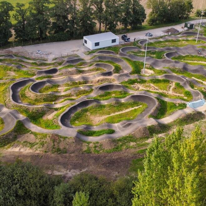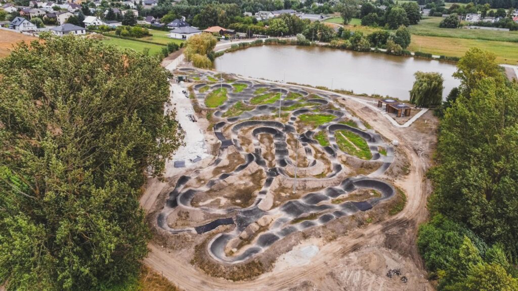 W 2023 roku w Parzęczewie oddaliśmy do użytku pumptrack o długości 1225 metrów — najdłuższy tego typu obiekt na świecie. To pierwszy rekord świata w portfolio BikeUniverse i dowód, że infrastrukturę rowerową można w Polsce budować w skali, która przyciąga uwagę daleko poza granicami kraju.
